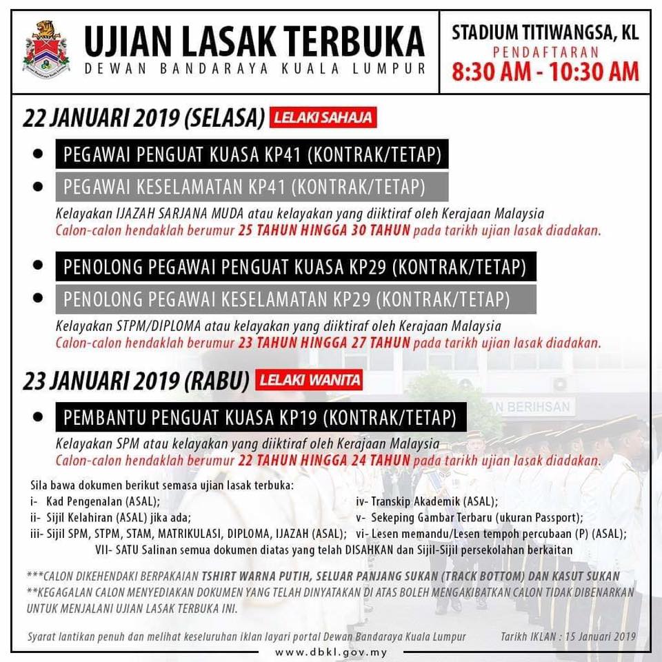 | Iklan Ujian lasak terbuka bagi jawatan di Dewan Bandaraya Kuala (DBKL) |